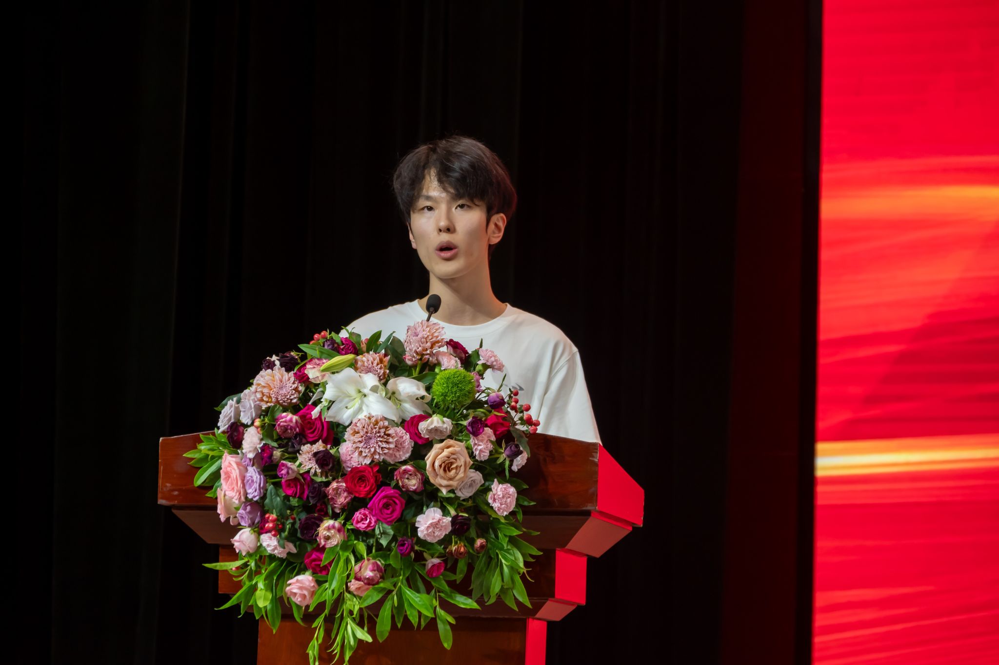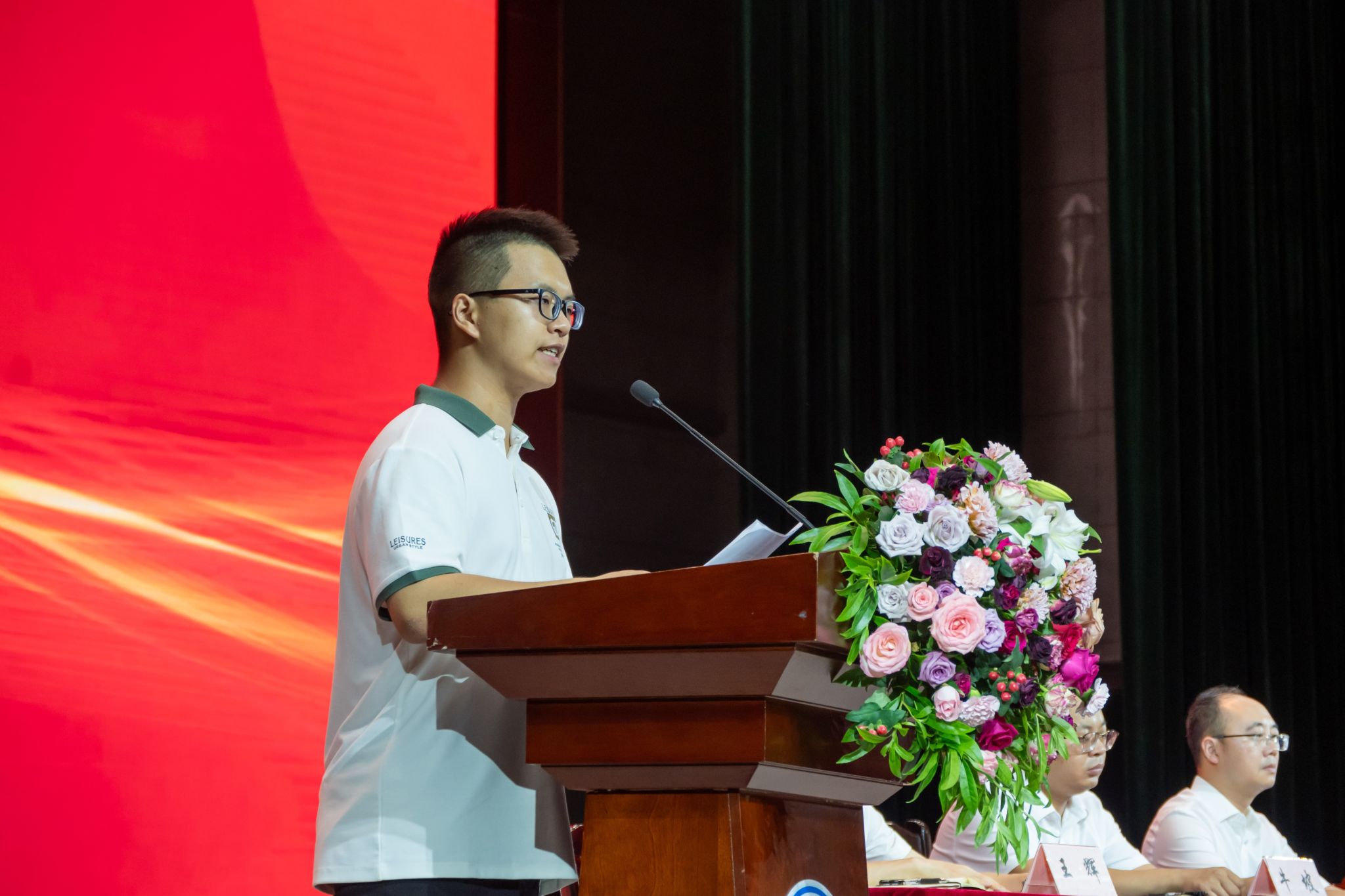 机械电子工程专业2班的新生代表刘俊邑在开学典礼上发言。他提及入学前对专业学习的忐忑与对“内卷”的焦虑,鼓励新生将焦虑转化为行动,建议新生在丰富大学生活中找准方向,不盲目求全。最后,他代表新生向父母、师长致谢,与同学相约不负韶华与时代,在青春赛道并肩奔跑。