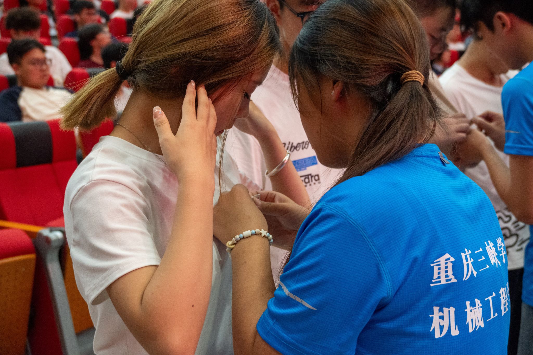 随后,举行了老生为新生代表佩戴校徽仪式,小小的校徽不仅是身份的象征,更传递着学院的传承与期许,让新生们深切感受到归属感与责任感。